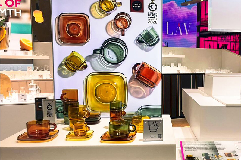Gürok Grubu’nun küresel cam markası LAV, Ambiente 2026’da yeni koleksiyonunu ilk kez uluslararası vitrine çıkardı. Zamansız çizgileri ve modern estetik anlayışıyla öne çıkan Calista, Helen ve Tessa serileri ziyaretçilerden büyük beğeni topladı.